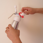 Making homemade whip cream with Whip-eez cream canisters is easy! Fill any size Dispenser slightly about half full with Heavy Whipping Cream. Add any flavoring you desire and sweetener at this time. Flavored syrups, Powdered Sugar or Splenda are best. Screw the head back on the dispenser and follow the steps below to learn how to use a cream charger.
